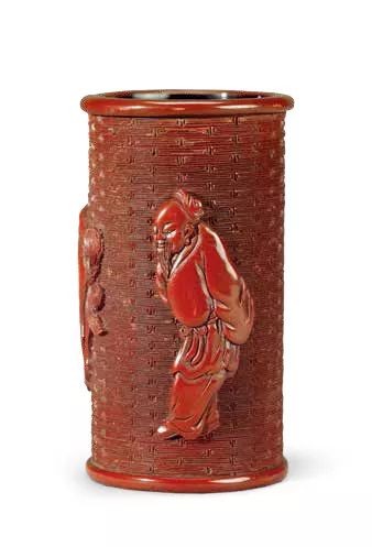 剔红伯乐相马图笔筒 明末清初