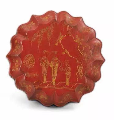 剔红游归图莲瓣形盘 明永乐