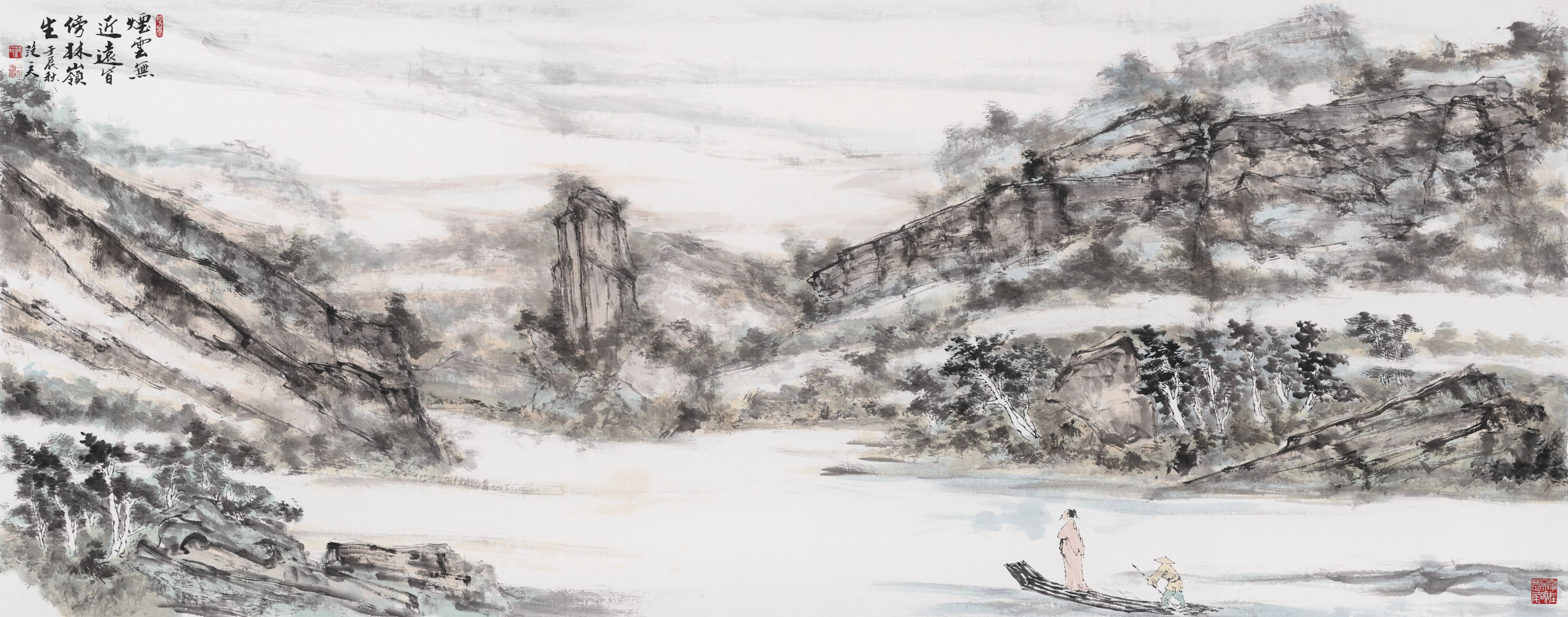 中国山水画是中国艺术的代表。笔墨、色彩与布局是构成中国画最主要的表现形式,历来山水画讲究景与情的有机结合。画家借景抒情,情由景生,中国山水画的意境需要画作者凝情聚感,笔墨外显,虚实结合,意境产生于画家的创造,完成丰富于欣赏者的想象,构成了绘画作品最深层次的艺术魅力。