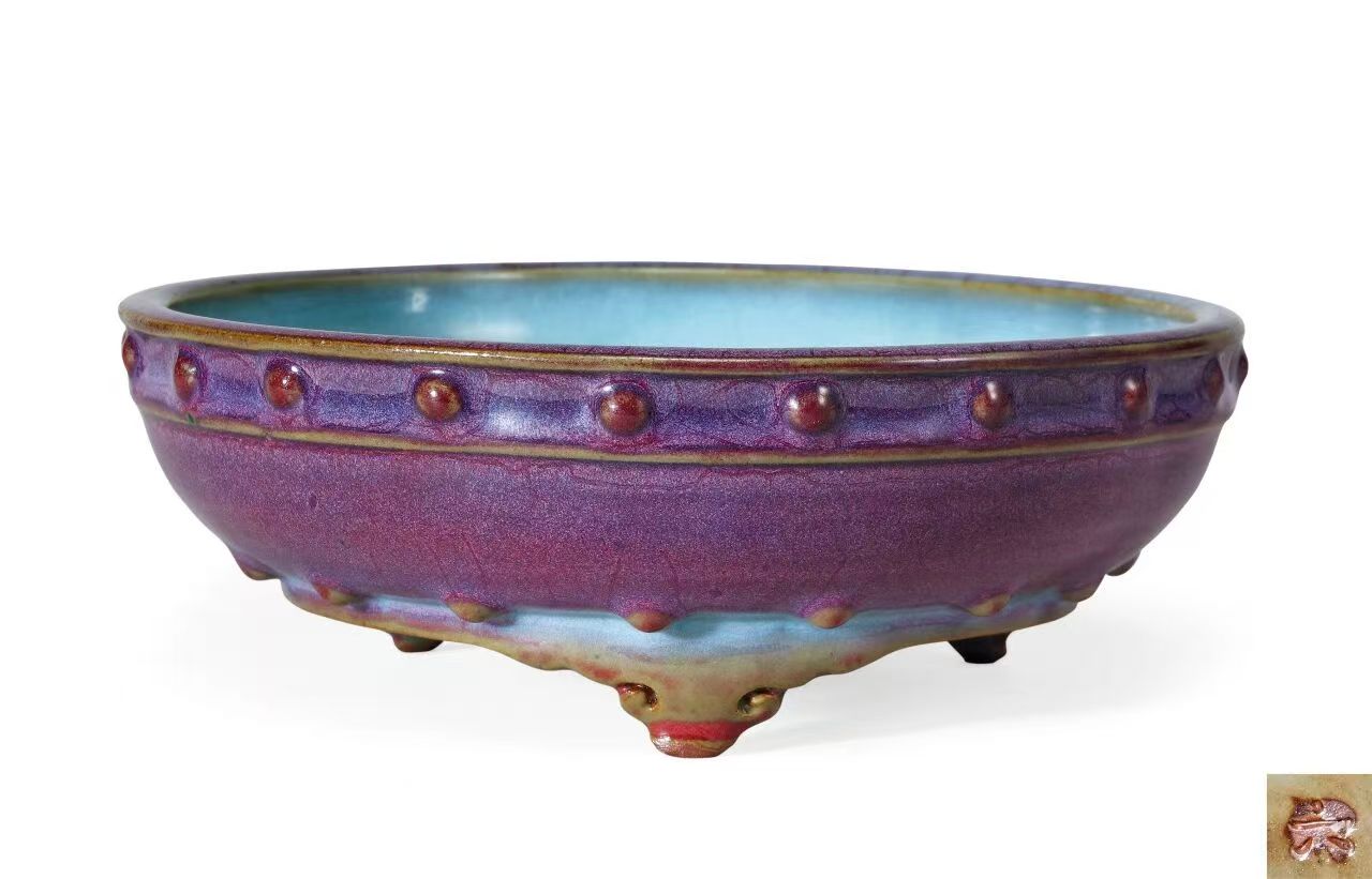 下面就归纳出北宋官窑瓷的如下特点一器型:两大类一类:仿古青铜礼器有:瓶、尊、鼎、炉、盘。二:文房用具:笔洗等多种样式。二:釉色:北宋官窑瓷其釉质肥厚,瓷无修饰,釉层厚,胎体也厚的特点。常见釉色有天青、粉青、米黄、油灰等多色。北宋官窑釉面长有缩釉,黑色的斑点。右面有开大片裂纹,粗的如同牛毛,也有细小的纹路,那是出窑后逐步形成的。釉质如脂玉,润泽,玉质感强烈。北宋官窑瓷的气泡分布密集,形成“聚沫攒珠”的现象这种现象。是现代仿品所达不到的。另外靠近足墙的胎釉结合处囤积釉较厚,靠近足脚的露釉处,足墙边缘较宽,宽度可达5至6毫米左右。而南宋官窑瓷胎釉结合部,足墙边缘比较窄可达1至3毫米。这是北宋官窑和南宋官窑不同之处,另外北宋官窑瓷的釉质如同羊脂般的美玉质感,可称千古绝唱。