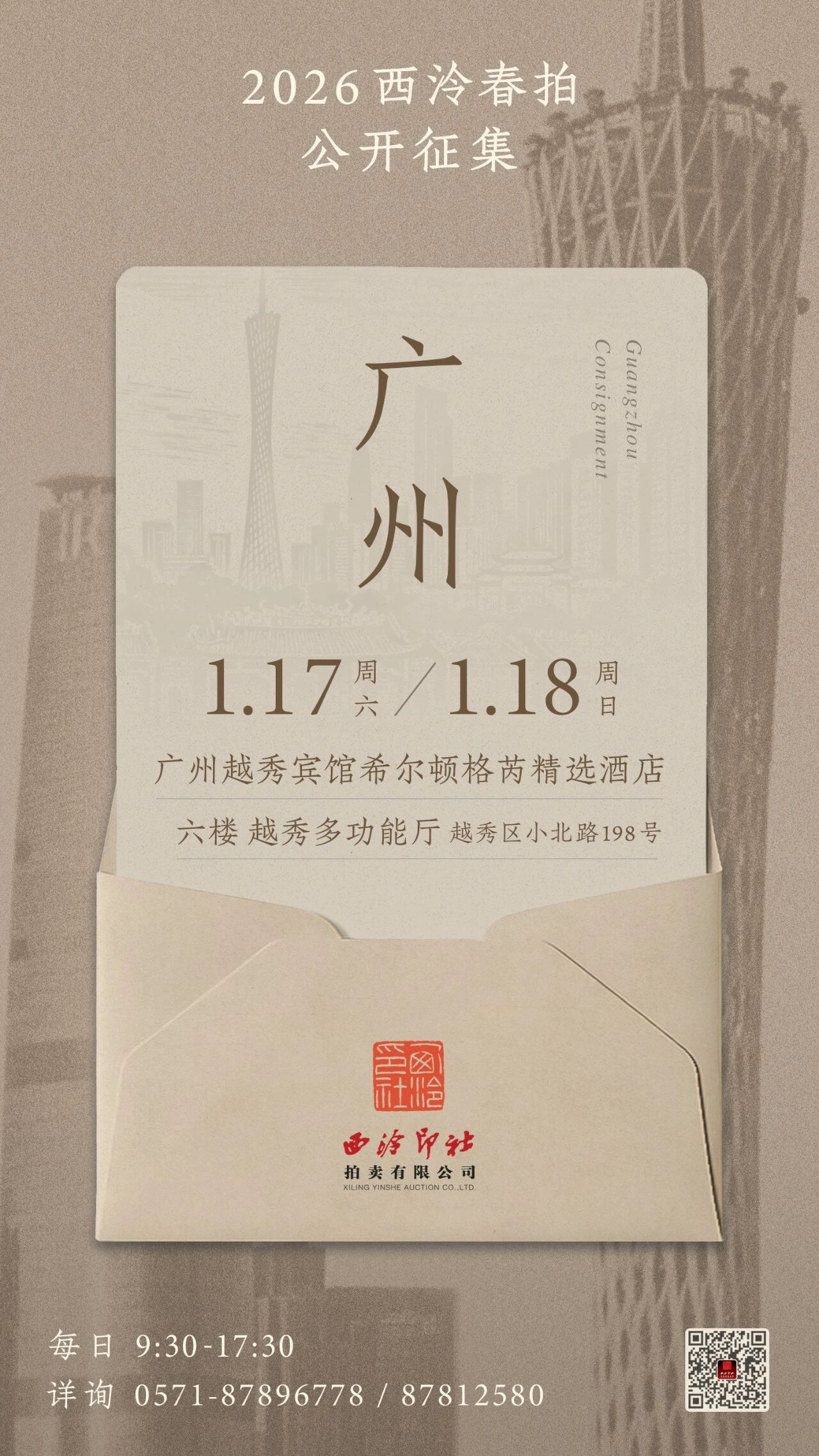 本次公开征集为期两天,每日9:30至17:30,征集现场顺序安排,无需预约,西泠绍兴秋拍、西泠网拍•艺是同步公开征集,详询0571-87896778、87812580。