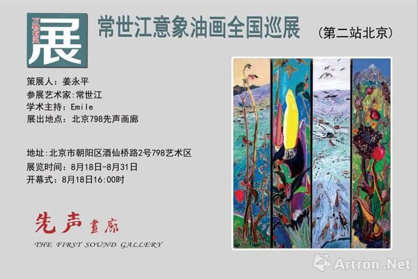 “万物有灵”常世江意象油画全国巡展(第二站·北京)即将于2018.8.18/16:00在北京798先声画廊震撼举办。本次展览是中国当代知名艺术家常世江先生继2018.4月首站在威海举办全国巡展后的第二站,主办方是北京798先声画廊、国际生命艺术研究院、中国传媒大学美术传播研究所,展览时间:8月18日-8月31日,学术主持为比利时皇家美术学院终身荣誉教授埃米尔先生。