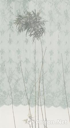 这种思考与徐华翎近些年的阅读有关。现行教育所形成的是,大多数中国人更了解西方历史,绘画领域也是一样。创新大旗的指向都是西方系统,渐渐中国传统被丢在脑后。如果说这是改革开放过程中一个必经的过程,现在很多艺术家已经开始了对传统的回望。近些年,徐华翎越来越留意研习古画,而这种阅读也呈现在了她的画中。在“丝图”系列中,一片蕾丝下面就隐藏着一页扁舟,而“若轻”系列中所做的颜色减法,正是对当代东方性的尝试。