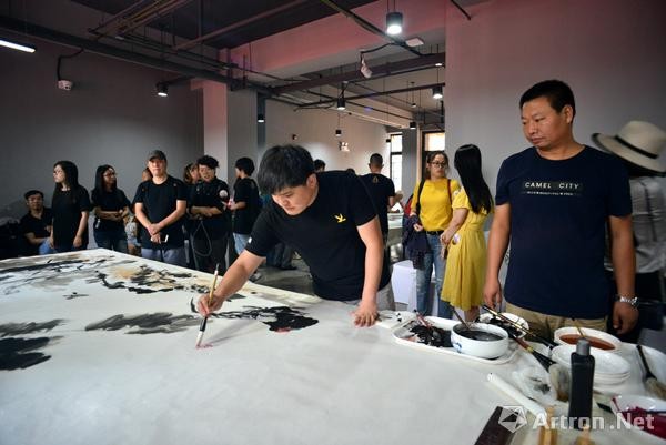 来自天津美术学院的艺术家在光影彩墨艺术馆。