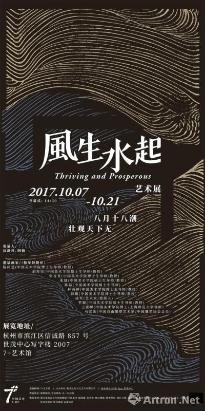2017年10月7日下午两点半,位于滨江世茂中心写字楼20层的七加艺术馆迎来开馆大展《风生水起》。展出陈向迅、胡寿荣、张谷旻、张捷、陈磊、林海钟、韩璐、成军、罗颖、王素柳、 马宏法等十一位艺术家的作品二十余件。