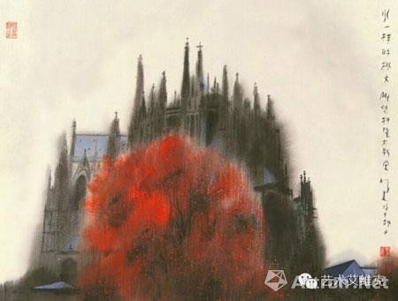 他非常重视且全神贯注地表现刻画物体的外在的现实主义形式(如大树下的风景,渡村的早晨等)。他不是简单地进行写生,因为那样只能得出“依样画葫芦”的呆板,而是着力于追求创造和领会物体的灵魂,寻找表象下面深层次的东西。这种作品里反映出来的关系以及作品中所要表达出来的情感自然而然地打动并感染着观众们的心灵深处,像他与他深爱的苏州家乡之间的关系就一一体现在那些美丽浪漫的胡同、古老雅静的桥梁和斑驳幽深的小巷中。如他的得意之作《百桥图》中拙政东园的小石桥就让我久久无法从那春意盎然的惬意中抽离出来。