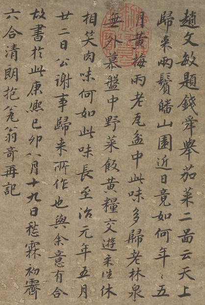 元·钱选《三蔬图轴》,纸本,设色,97.6x47.4cm,中国台北故宫博物院藏。画塘上有乾隆帝题:秋圃真香。钱选(约1235-1307前),字舜举,浙江吴兴人。工诗,善书画,与赵孟俯同为“吴兴八俊”之一。