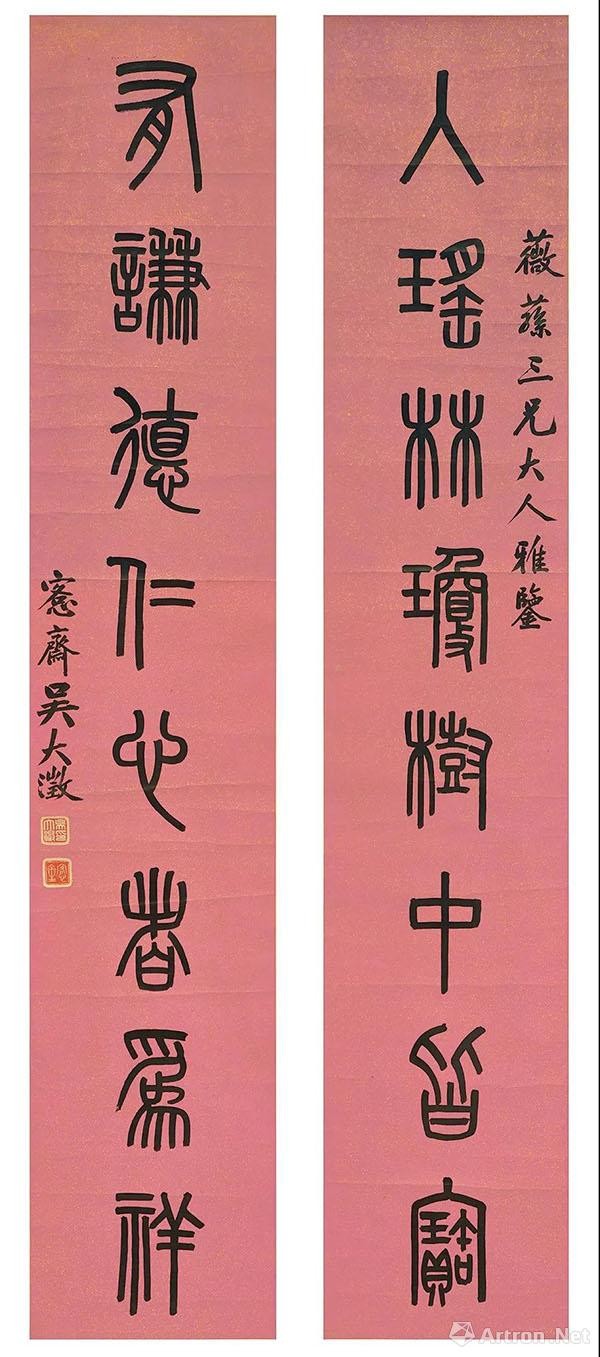 吴大澂 《篆书八言联》 水墨洒金笺 镜框