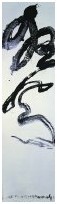 一九八八年,我在传统书法艺术中摸爬滚打了二十年之后,因为本性的不安份守己,更因我的《狂怪和创新》、《狂怪和美》这两篇当时曾引起中国书坛轩然大波的“狂”文,我成了中国现代派书法群体中的一员。又是十几年过去了,我的现代派书法创作多数仍未脱离汉字,且多以少字敷面目出现,而且这种书写少字数作品的倾向也开始向传统行草书创作中延展。就这幅作品而言,“听”字点画繁多,“雨”字点画稀少,本是很难安排,而且一笔失准,则全篇皆输,毫无救补的余地。所以,如果没有深厚的传统书法技法和构图能力,没有音乐般在时间里流淌、在空间中振动的节奏感、韵律感,特别是没有新颖灵动的创新意识,越是字少就越难书写,而且所有这三者必须是在完美统一地瞬间结合才可能会有好的作品出现。