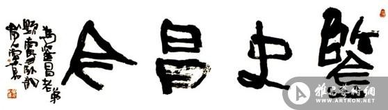 搞艺术,不学习前人、他人的经验、技法和形式当然不行。但学习的根本目的是将其拿来为我所用、为我所融,如同牛吃百草而挤奶, 蜂采百花而酿蜜一样,收入和产出是绝然不同的东西。所以,评论此 左右两幅作品学谁、像谁,是没有意义的。虽然初看它和近些年的流行书风有点相象,需要强调的却是:这两幅作品的形式内涵,更多的 是一种艰涩、苍茫。既有豪气的抒发、展示,也有郁闷之气的涌动、挣扎,但却没有情趣低下的卖弄和无病呻吟的扭捏。因此,虽字字见 丑,但却字字见势、字字见力,字字都有浑茫、浩荡之气。看起来,它们的人选,既是党禺书法艺术风格的成功之处,又是格式塔美学——有意味的形式的胜利。