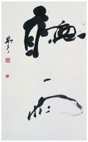 在这幅作品书写之先,我绝没有“意在笔前,字居心後”(王义之语),更没有“预想字形偃仰平直,然後书之”(宋曹语),只是突然间想起了《雨打芭蕉》这支曲子,即心随曲转,手随心动,相应无问中,这幅“听雨”就诞生了。今天再来分析,“听”字的倾侧探听状,“雨”字的“雨打芭蕉”声,似乎历历在目,声声入耳;“听”字的凝炼厚重和栩栩如生,“雨”字的空灵透剔而又广袤幽远,使这幅书法作品达到了如诗似画的妙境。联想到自己现代派书法创作的经历,用国画的笔法和构成,书写少字数书法作品,确实是我的创作强项。这幅行草作品就是一个很好的例证。