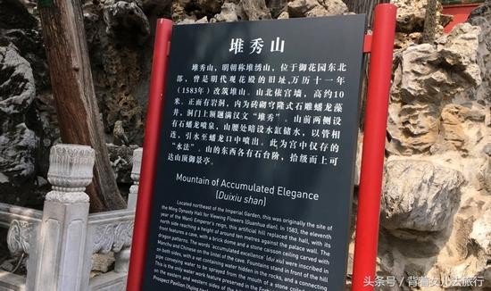 或许你不知道,堆秀山上的太湖石有着将近1000年的历史,比紫禁城还要大300岁。北宋灭亡之后,宋徽宗在东京营建的“艮岳”被毁。明朝初年,残存的“艮岳”太湖石被运到北京,建成了如今的堆秀山。