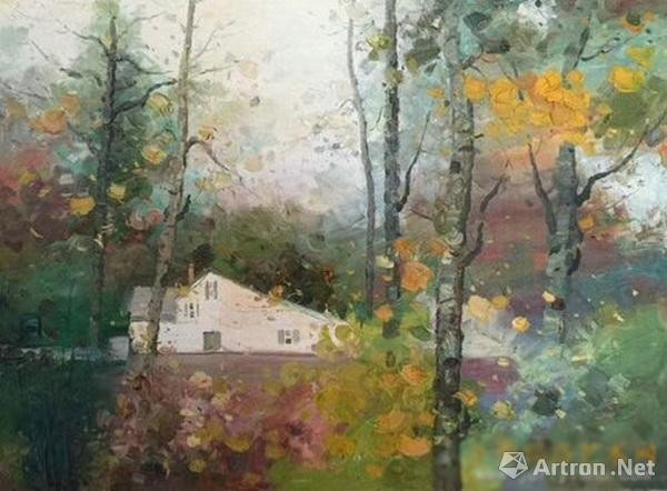 近期作品的《白桦林》《丽丽娅庄园》《卡普拉罗拉印象》《秋吟》《额尔古纳印象》《佩鲁贾冬雨》《独树一帜》《西青郊野公园》《卡密那诺的秋天》《醉人的季节》更是把高级灰运用到一个新的境界与高度,通过纯度对比,前后虚实对比,空间推移,使画面和谐有韵味,更是将高级灰的一个重要的要求:色彩搭配漂亮,表现出某一种倾向的氛围充分表现出来了。