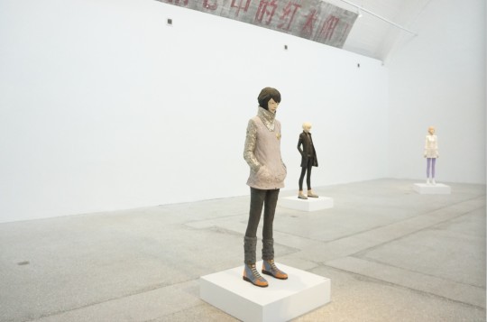 在这些作品中,艺术家选择了日本国年轻人的形象来进行创作,着装时尚的,形体略微拉长的人物形象,有着近乎相同的姿态和相似的表情,或者应该叫无表情。在艺术家看来,夸张的表情容易将观者轻易的带入作品的情绪中,而一种“似似而非”的表情更能带来观者自己的感受。而在本次展出的作品中,艺术家也将在创作过程中随机从新闻节目中听来的单词作为设计的一部分运用到雕塑中,也使得每件作品都成为一件反应时代的具象雕塑作品。驻足期间,除了对人物情绪的感受,也是对年轻一代未来的联想。