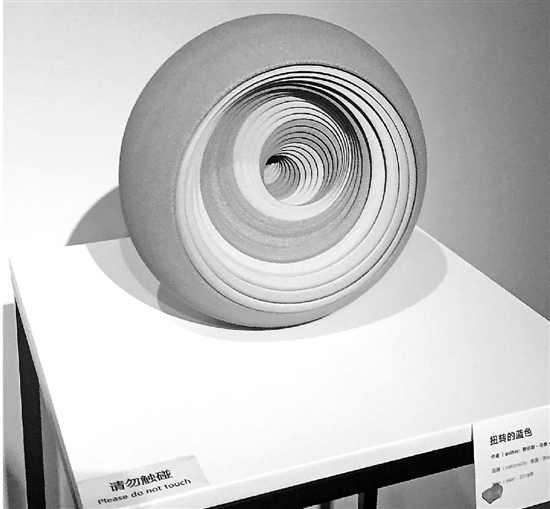 在南山路的展厅里,钱报记者看到了许多脑洞清奇的作品。其中最引人注目的是英国艺术家钱伯斯·马修·约翰的一组奇妙的螺旋球。如果不是亲眼看见,很难相信这是手工做的,还是陶艺,因为这些球体里一圈圈的螺旋结构精密得好像是机器的拉花,宛如迷宫。