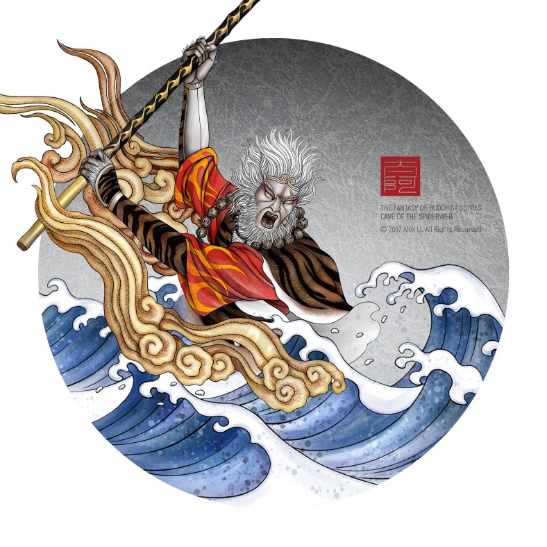创作灵感即源出于儿时的动画片[大闹天宫]。这部绘卷也是【新古典中国神话专题】的开篇之作,此后,将陆续推出一系列的以中国古代名著和历史传说为主题的绘画及衍生作品。