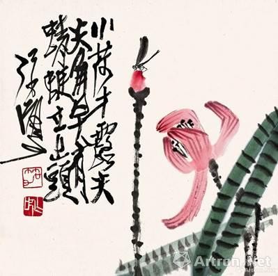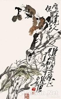 因此,无论是陈笳咏独具一格的书法,还是其掀雷揭电的笔墨与图式,都不难看出,他的大写意花鸟在齐白石与崔子范之间,开出了自己的园地。如果说,他的《高原春色》、《山村无处不成画》、《农家乐》、《老农印象》还有石鲁的影响的话,那么,他的《一雨成秋》、《空山不见人》、《丁香花》、《小猫头鹰》、《龙爪槐》、《松鼠图》、《小草蚱蜢》、《小荷才露尖尖角》等作,这既非石鲁,也非白石,更非崔子范。即使在如日中天的“长安画派”其他画家之中,也未见如此形态与精神。在这方面,也是在这一意义上,我说陈笳咏的创作是卓然独立的。