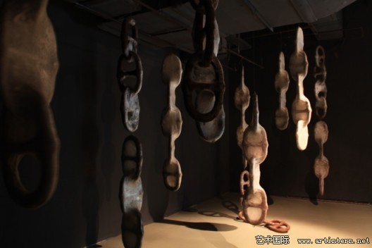 Liang Shaoji 梁绍基,Chains: The Unbearable Lightness of Being/Nature Series No.79链:生命中不能承受之轻/自然系列No.79, 2003-12,polyurethane colophony, iron powder, silk, cocoons,聚氨酯树脂, 铁粉, 蚕丝, 蚕茧, Variable dimensions可变尺寸