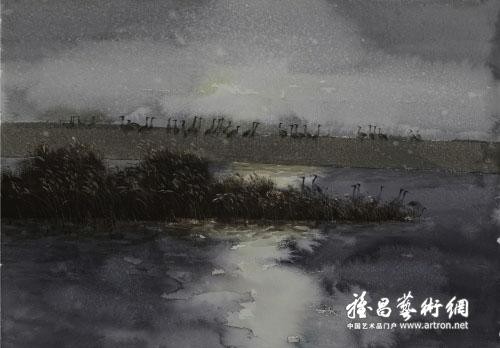 水彩《月上中天》周利群