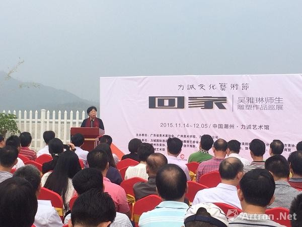 2015年11月14日上午十时三十分,“回家——吴雅琳师生雕塑作品展”于潮州饶平力诚艺术馆隆重开幕,此次为吴雅琳师生作品巡展的第三站。本次展览由广东省美术家协会、广州美术学院、力诚集团公司共同举办,雕塑家吴雅琳及其学生彭程、周巍、蔡丽贤、苏锦驹、郑晓雄、林景、关若宇、翁振伟和朱英元的雕塑作品均参与展览,展览在展现了雕塑家吴雅琳近几年的艺术成就与思想精神的同时,也体现出吴雅琳对这次展览的学术定位:传播文化、推广雕塑和提携后学。学生们的创作现状与作品成果也表达了他们对当代雕塑现状的深度思考与实践理念。本次参展作品结合传统的雕塑手法与现代科技数码影像、数控机械、3D打印等多种新型创作手法,将视觉重点放置于传统与当代、中国与西方两大角度,以此引导观众对中国雕塑传承与现代创新的认识与思考,将“雕塑”这一鲜少在日常生活中出现的艺术形式以活泼、有趣的形式带入人们的视线中,同时也是对广东当代雕塑的发展现状的一次重要阐释。