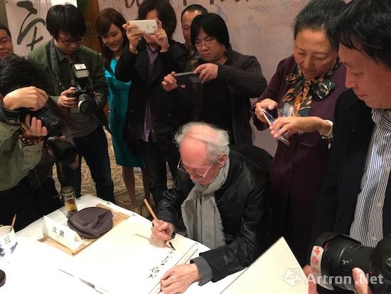 (雅昌艺术网讯 王林娇)已经85岁高龄的书法大家沈鹏先生曾笑谈不高兴被称为“老”,因为自己“尚且年轻,还有很多创作潜力”,虽是一句笑言,但是依然能看出沈鹏先生在艺术创作中孜孜不倦的追求。日前,沈鹏先生草书新作《张九龄感遇诗四首》新书发布会在北京举办,沈鹏先生的出席引发了现场书法界嘉宾及媒体的关注。