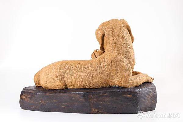 作品刻画精细,高度还原中华金毛犬的亲切温和,只见它们一个卧趴,一个仰望,眼神温柔,形神兼备,具有极强的视觉效果,以及极高的欣赏和收藏价值。
