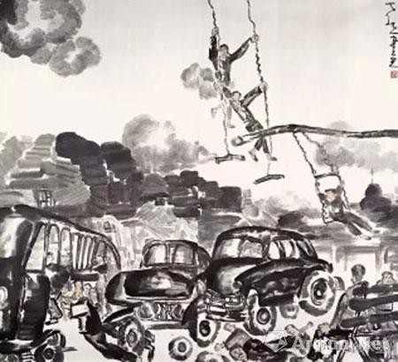 现代都市是工业文明所创造的,它给人以现代的生存空间,但在同时它也给人以精神的压抑和生存的困惑,在自然灾变和战争灾难中,城市中的生命将更加危险——那么人将如何面对城市的生存和现代工业文明?这似乎是李孝萱对人们的提示和设问。