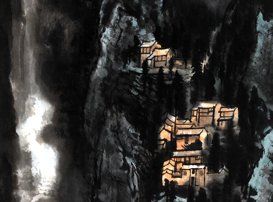 黄胄是20世纪中后期最有影响的画家之一,他笔下的人物画、动物画意态生动、简括传神,富有浪漫的生活气息和时代感,开中国画坛一代新风。其彩墨人物画走的是中西融合的道路,他将西方绘画的色彩块面与东方柔美流畅的线条相交融,并且突破了传统的严谨,创造了激情奔涌、活泼潇洒的风格。在黄胄表现新疆、西藏少数民族风情的作品中,画面充满了一种发现的惊喜、真情的流露。正如此件《边疆之晨》,画中的两位女子各提一水桶,正轻声说笑着款步走来,人物右前方浓墨表现的狗与人物后面的几只骆驼,增加了画面的生活气息,也让人不由得融入了此刻画面所呈现的边疆生活,感受一个美好清晨的开始。