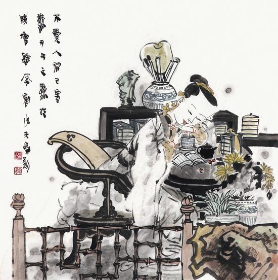 画家王家训先生自幼时习画始,就从未间断对人物的写生,在生活中积累了大量生动而丰富的创作素材。他的人物画功底深厚,具备有敏锐的观察力和高超的默写技艺。他对人物结构把握准确,人物造型能力强,以线构面,写实手法与意象手法相结合,充满了浓郁的中国画气息。他画人总是结合着画“情”,总是要画出那种特定环境中特定人物的神情,而且还夹带着自己的情感在内。在他笔下,外形的描写,始终是为了表现人物的性格特征,写形服从于写神的最高要求,达到了“形神兼备”。