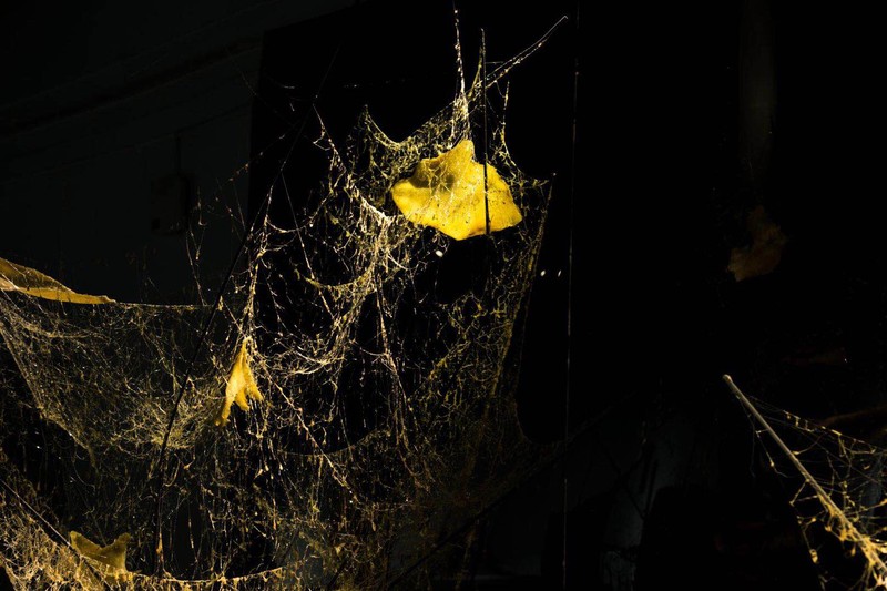 胶质是一种常见材料,却总被作为粘合其他材料的介质。因此我想从艺术角度出发,发掘它的艺术表现潜力,戏剧式聚焦的灯光效果突出材料特性和气场的凝聚力。胶质的透光性和韧性是材料最大的两个特性,用胶质翻制出身体的部分残缺,喻指肉身虽腐,灵魂自由。黏腻的丝状缠绕来产生情感联结。