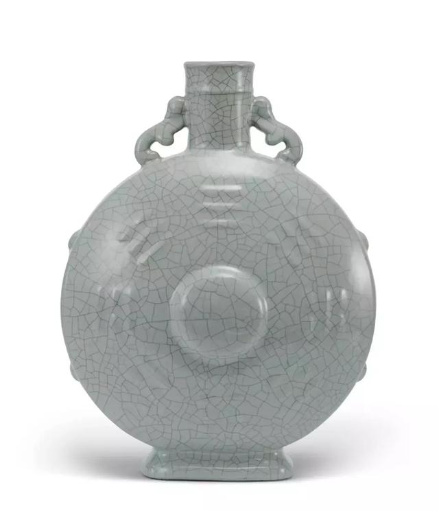 清雍正 仿哥釉八卦纹双螭耳抱月瓶