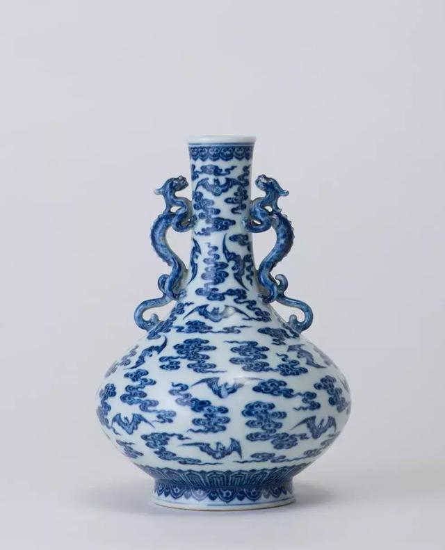 清乾隆 青花云蝠纹双螭龙耳瓶