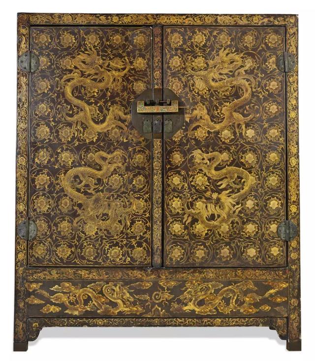 明末清初 黑漆描金缠枝莲龙纹大柜
