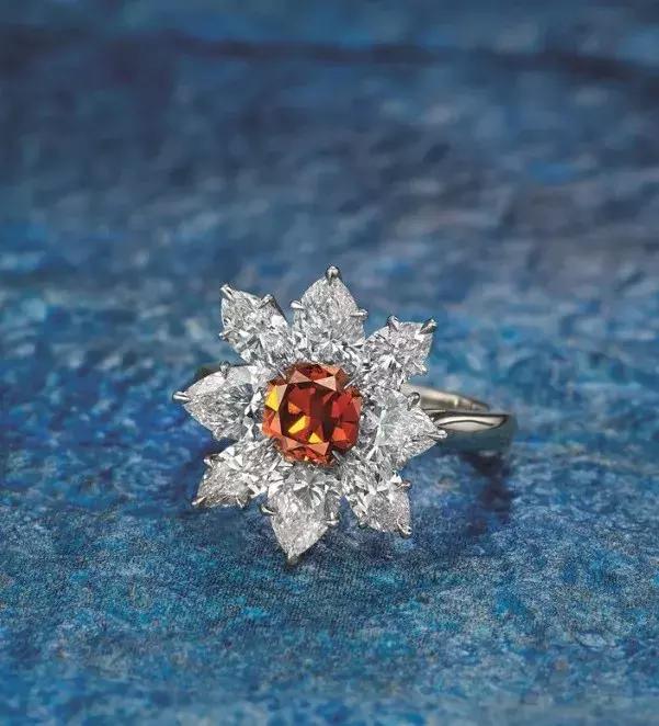 珍罕1.26克拉天然彩红橘色钻石配钻石戒指