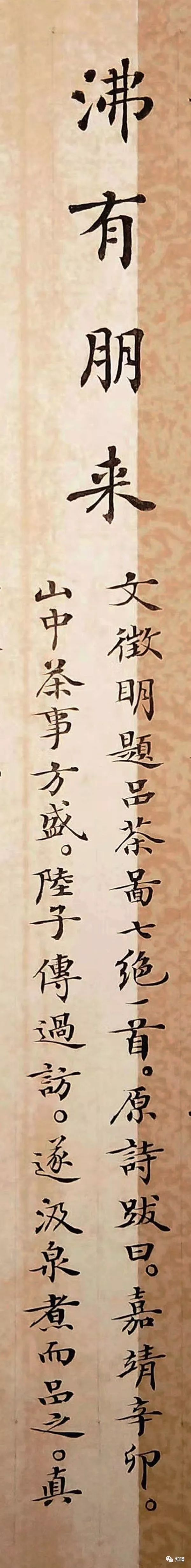 文征明题品茶图七绝一首,原诗跋曰:嘉靖辛卯,山中茶事方盛,陆子傅对访,遂汲泉煮而品之,真