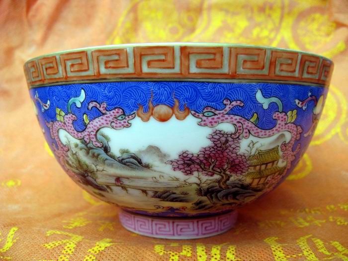 雍正的珐琅彩比较成熟,工艺上有所突破,彩料更为丰富,有色地彩绘,但更多的采用了白地彩绘。白地彩绘能更好地突出珐琅彩釉的艳丽鲜亮。雍正珐琅彩纹饰多为山水、竹石、花鸟等景物,同时在绘画中配以相应的诗句,溶诗、书、画于一体,别有风味,显得更加高雅。雍正时期还盛行单色作画,如用胭脂红、深兰、墨彩……任选一色成画,颇有中国画风格。这是独创,特别靓丽。