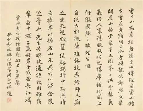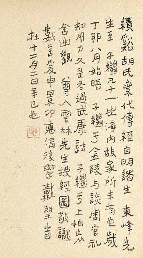 在绩溪县城东街,有片胡姓住宅区,称“金紫胡",因宋代名臣胡舜陟获封金紫光禄大夫而得名。金紫胡氏子孙十分注重诗书礼仪,到了清代,更是人才济济,出现了许多善治经学的大师级学者。比如金紫胡氏在清朝的三位名人胡匡衷、胡承珙、胡培翚(见章炳麟《訄书》及梁启超《中国近三百年学术史》),被称为“礼学三胡”,其学传于戴震,是为徽学的重要组成部分。此册由赵之谦等名家题跋的《云林先生授经图》便与这个累世传经的诗礼之家颇有渊源,盖“云林先生”即金紫胡氏家族之胡秉元,是一位颇有名望的经学学者,大儒胡培翚之族叔也。此册精彩纷呈、含义宏深,现仅就其数端,列而论之。