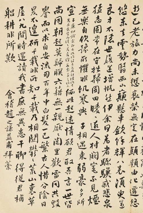此册中赵之谦为“子廉”题云林先生授经图册,集陶渊明诗句成篇,无年款。但是咸丰三年(1853)赵之谦写的一通信函却可以帮助我们确定这篇题词的具体书写时间,其文曰: