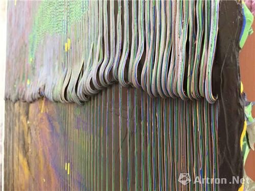 “因为我是学版画出身的,在画画的时候,我便利用了版画的技巧,一层一层的将颜料画上去,但是画多了之后,我就忘了自己最底下用的是什么颜色了,于是我尝试用刻刀将作品划开,想看看里面是什么颜色,结果发现侧面出现的一层层颜料效果看起来不错。就这样开始了现在这种作画方式的创作。从一开始有一些具象的形象发展成现在相对抽象的形象,发觉自己不知不觉地就成了一位抽象艺术家了。”鞠婷笑到。