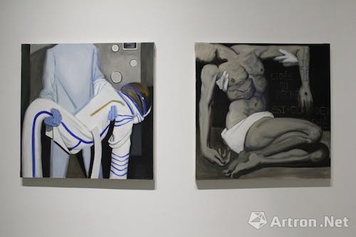 左:《下架》,右:《罪名》 布面油画 100X100cm 2015