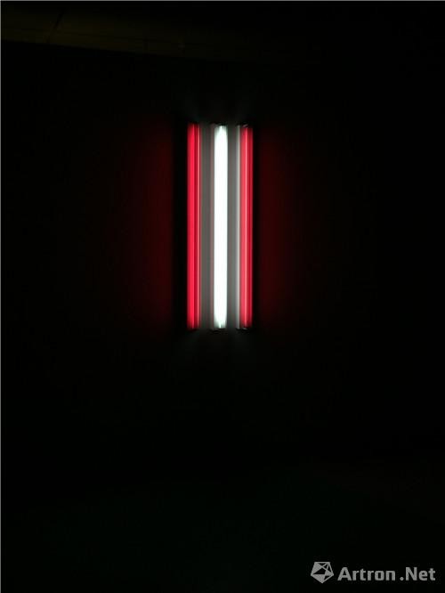 吴小军的创作形式多样,油画、观念摄影、雕塑、装置,均有涉足。他希望通过多种艺术形式,以真实的社会实践为基础进行创作。这件由灯管为主要原材料的作品从天而降,通过强烈闪烁的光亮给人带来一种极度不适感,似是一道闪电。