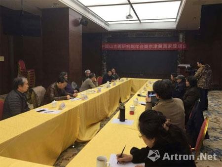 新年伊始。在新的一年到来之际由中央电视台书画频道河北工作中心,河北省美术家协会,河北省画院,河北省国画院,中国山水画研究院主办“中国山水画研究院年会暨京津冀画家座谈会”在河北省石家庄举办。会议上主要对2015年的工作做出了重要总结,对2016年的工作进行了完善的规划。在过去的一年里主要举办了“大爱中原”爱心助残活动、“江山颂”品牌系列活动等。此次座谈会的召开主要以京津冀一体化为前提,深入研讨了京津冀艺术家协同发展、共同合作。在会议上河北画院院长张国君向中国山水画研究院的各位艺术家发出邀请,希望他们参加河北画院的主题系列活动“走进太行”。积极参与京津冀一体化的建设,进一步提高自身的文化修养和艺术造诣。探讨如何坚守我们的文化传统、如何在当今培养我们自己的艺术土壤。严谨的治艺态度,守望家山,固守这一片净土。“做诚实的人,画诚实的画”。在当今画坛是不可忽视的力量,必将在美术史上注入新的一笔。