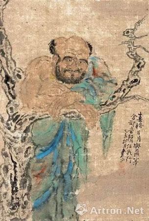 罗汉攀枝呈梵相,岩僧倚树现真形。