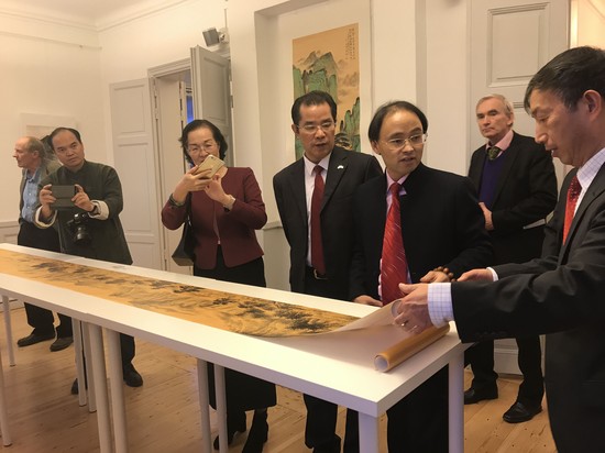 瑞典当地时间2017年11月18日下午三点,“江南墨韵---钱玉清、丁亚忠瑞典书画精品展“在斯德哥尔摩中国文化中心隆重开幕,中国驻瑞典大使馆大使桂从友夫妇、大使馆文化参赞浦正东夫妇、瑞典著名策展人、瑞典阿斯特里艺术中心艺术总监安德斯先生、 以及来自瑞典艺术界、收藏界及重要嘉宾近200人参加开幕式。