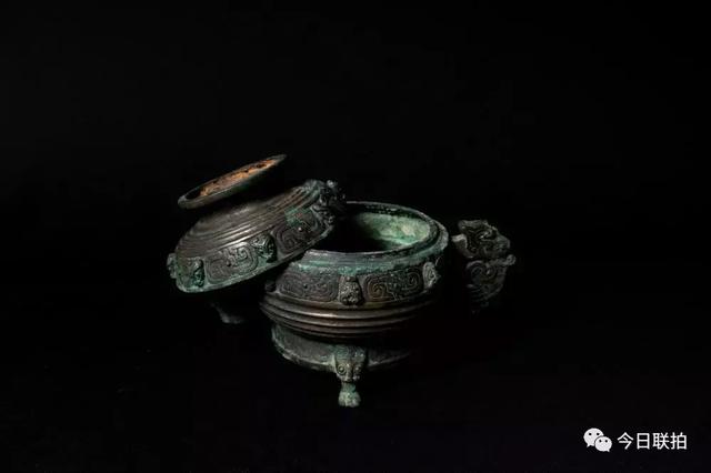 青铜弦纹三足簋