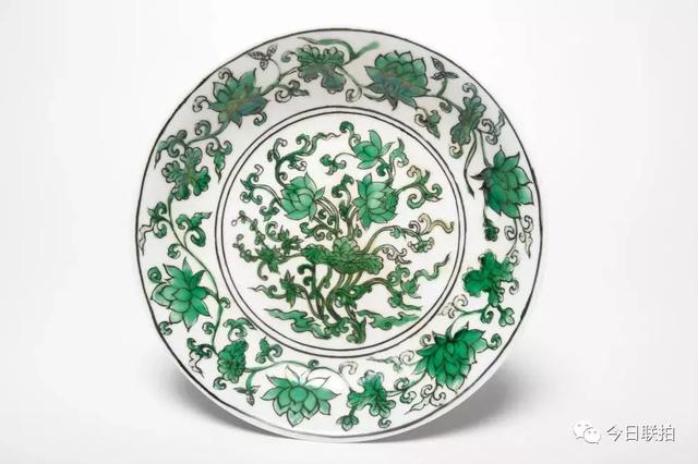 绿彩莲纹盘