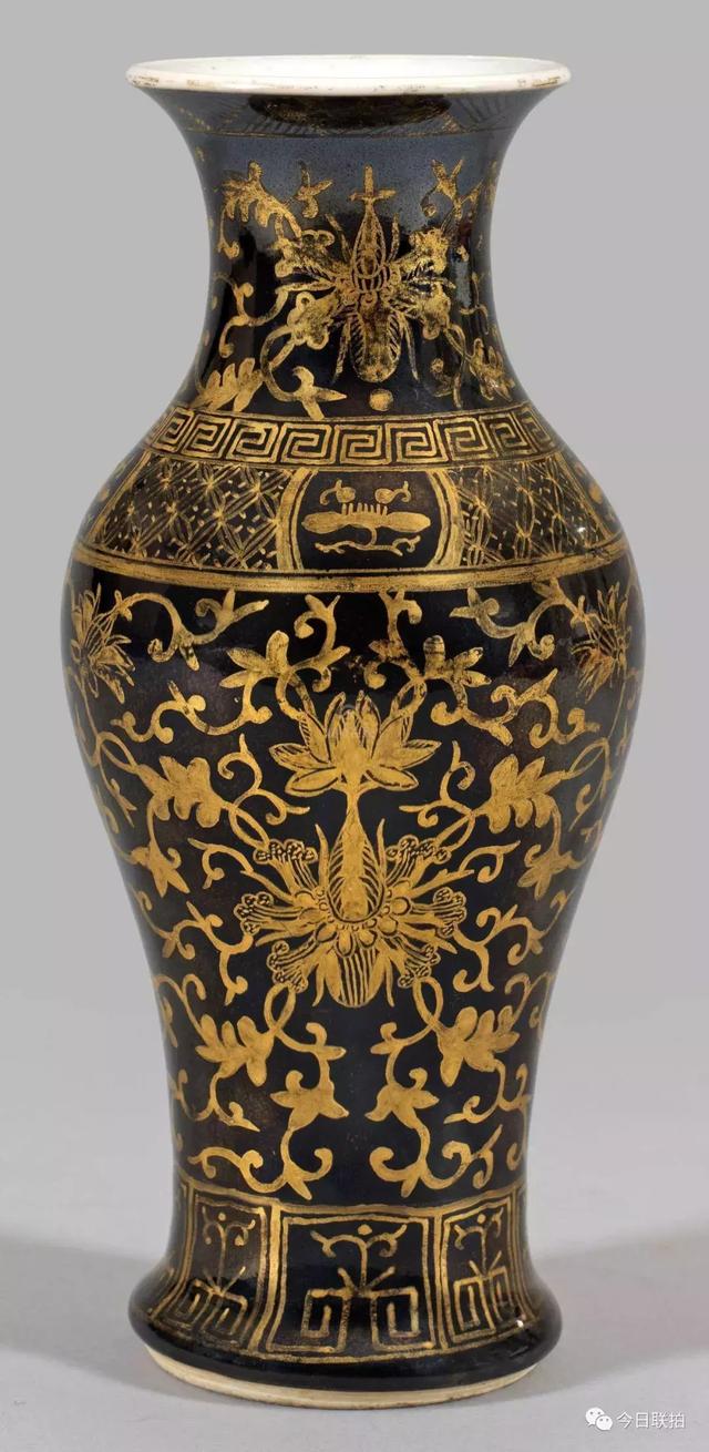 十八/十九世纪 墨地金彩缠枝花卉纹瓶