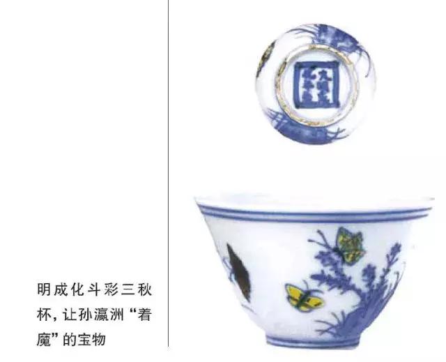 但成化斗彩中最为珍罕的是大收藏家孙瀛洲先生捐献的三秋杯,全世界只此一对,绝无二双,比鸡缸杯还要珍贵,堪称故宫博物院的镇院之宝。