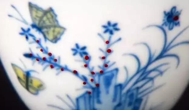 值得注意的是,其中一只蝴蝶的翅膀上所施的紫色彩釉色浓而无光。