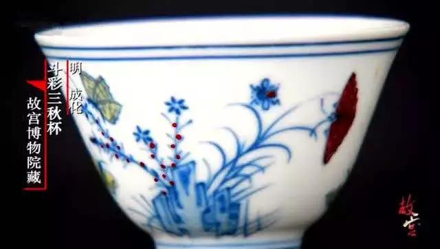 后人认为成化的瓷器带有女性的阴柔美,不像永乐、宣德那般豪放、粗犷,除了成化帝的敏感性格以外,有人推测像三秋杯这样的斗彩小件是万贵妃的喜好。
